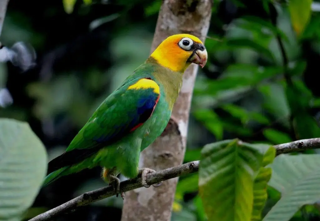 Loro Saffron-headed (Pyrilia pyrilia): Con su cabeza de un vibrante amarillo y cuerpo verde, es una vista deslumbrante en los bosques colombianos.